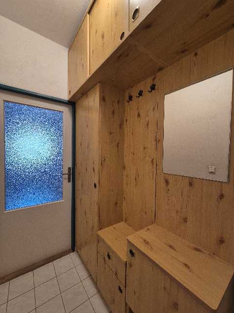 Předsíň - vestavěná skříň se zabudovaným botníkem a zrcadlem.