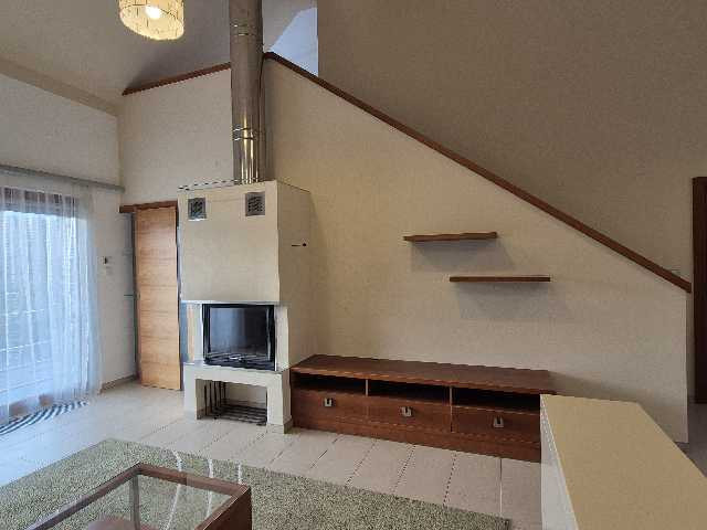 Zádveří 4 m2, chodba 4 m2 s vestavěnou skříní a s přípojkou na pračku, samostatné WC 1 m2, schodiště do patra 8 m2, koupelna se světlovodem s umyvadlem - vanou - sprchovým koutem 5 m2, ložnice 13 m2, kuchyně s jídelnou a s obývacím pokojem a krbem 35 m2. Z kuchyně se vstupuje na zasklenou verandu a z ní potom do zahrady.