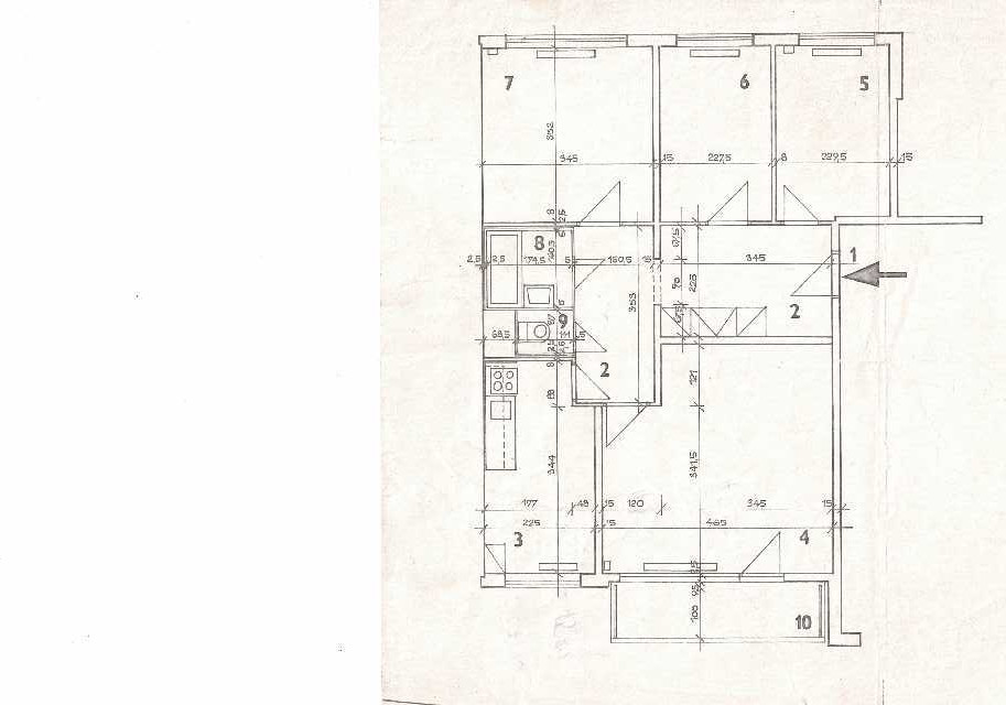 Prostorná předsíň 13 m2, koupelna 3 m2, samostatné WC 1 m2, kuchyně 9 m2, obývací pokoj 20 m2, ložnice 12 m2, pokoj 8 m2, pokoj 8 m2, balkon 5 m2, sklep 3 m2.