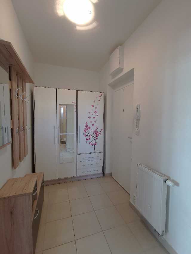 Předsíň – šatní skříň, věšáková stěna se zrcadlem a botníkem.