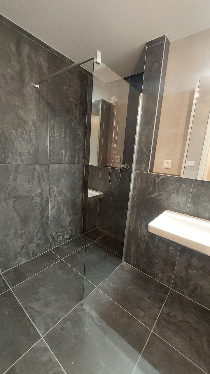Koupelna – sprchový kout, páková sprchová baterie, umyvadlo s pákovou baterií umyvadlovou, zrcadlo s osvětlením, přípojka na pračku.