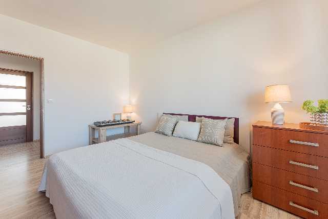 Prostorná předsíň 7 m2, šatna 3 m2, koupelna 3 m2, samostatné s WC 1 m2, kuchyně 12 m2 s možností posezení a se vstupem na balkon, odvětratelná spížka 3 m2, obývací pokoj 15 m2, ložnice 16 m2 se vstupem na lodžii, lodžie 5 m2, balkon 3 m2, sklep 3 m2.